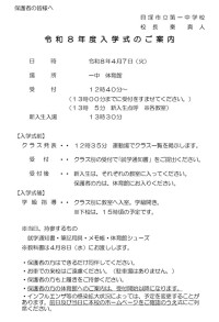 令和8年度入学式の準備について