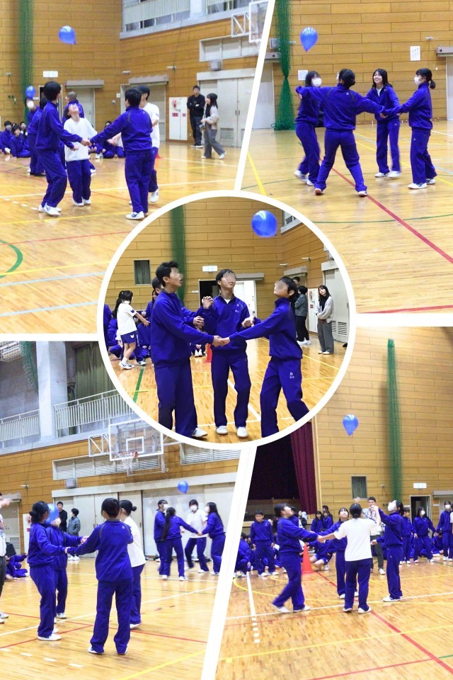 12月22日(月)、2年生がクラス対抗レクリエーションを行いました。レクリエーション大会は、生徒一人ひとりが声を掛け合いながら、最後まで前向きに活動する姿が見られました。競技の中では、うまくいった場面だけでなく、競技の1つである4人5脚では思い通りにいかない場面もありましたが、その都度互いを励まし合い、協力しようとする様子が印象的でした。このレクリエーション大会の時間は、給食の準備時間を早く行い、その時間を学年で貯め、楽しい時間をつくることができました。キャンペーンと行事を通して、仲間と力を合わせることの大切さや、思いやりの気持ちを改めて感じる機会となりました。仲間と協力する大切さを実感できた一日でした。