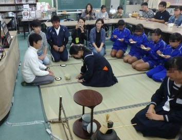 その他、体育館では、展示、スポーツコーナー、中庭付近では手作りコーナーや食べ物コーナー、図書室では茶道部のお手前もあります。