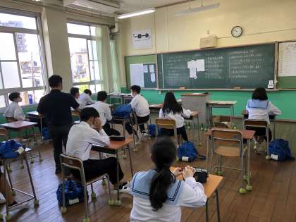 2年生は3回目の登校日。課題や提出物を集め、身体測定(身長、体重、視力)をしました。