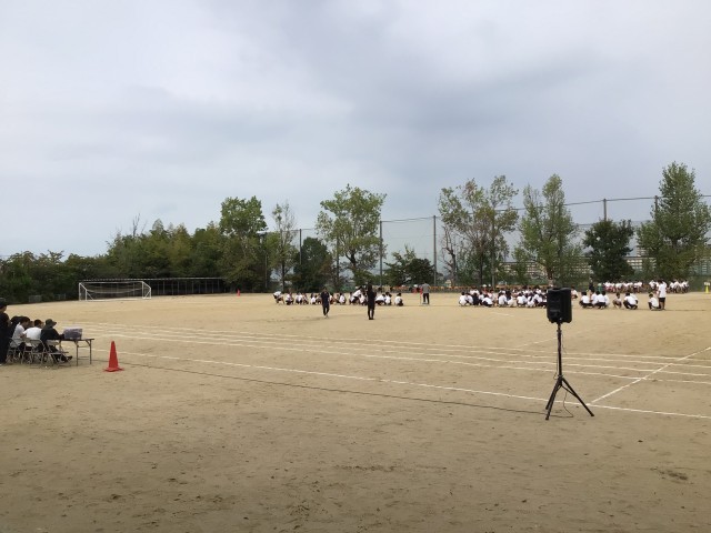 午前の部の予行は天候不良のため体育館で。午後の部の予行はグラウンドで行いました。