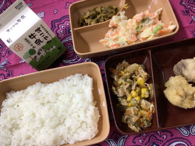 3枚目→塩唐揚げ、セルフチャーハン、ポテトサラダ、もやしときゅうりの韓国風あえでした。ご馳走様でした。