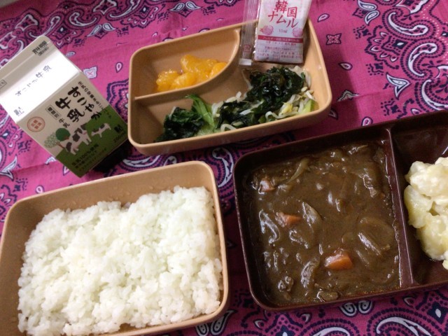 2枚目→ビーフストロガノフ、ジャガイモのマヨネーズ焼き、わかめサラダ、みかん缶でした。ご馳走様でした!!