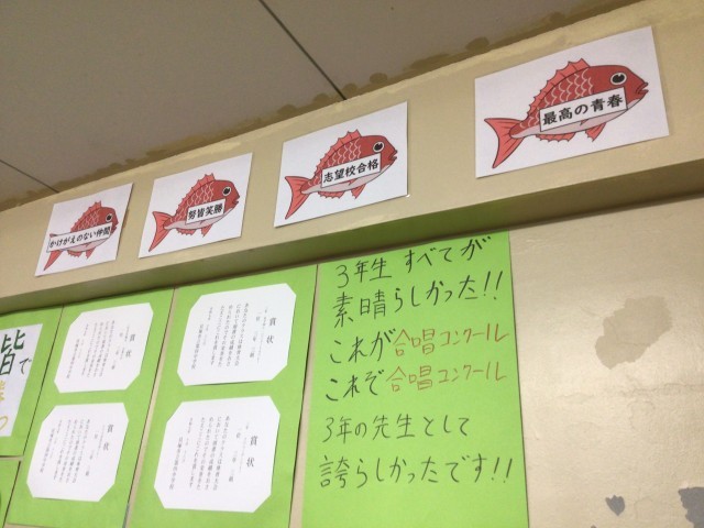 2枚目→ ちょっと待て待て、その縁起物は3年みんなのものだろう!と、職員室にひきあげられてきた釣り竿です。 ていうかこれ、四中みんなのものなんですけど。笑