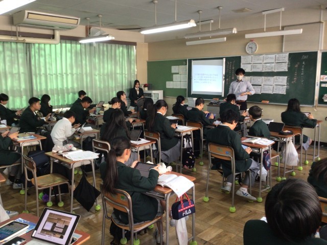 1年生道徳の様子です。考える道徳、議論する道徳。この教室で考え議論していたのは、過ごしやすい社会についてでした。「ゴミ箱のあるときー(のゴミ問題)、ないときー(のゴミ問題)」をグループで考えて交流した後、「そもそも、この問題を解決するには、どんなことが大切か」を話し合っていました。