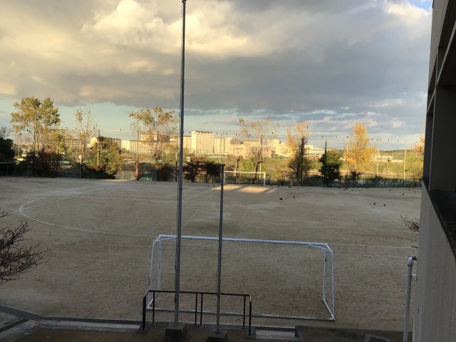 3枚目→テスト前で部活動の無い夕方のグラウンド。カラスが占領していました。なんだか不気味でした。曇り空に低い雲、カラスの大群…明日も平和な1日でありますように…