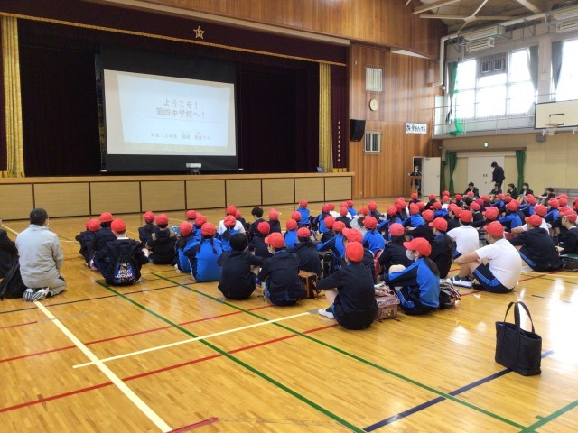 4枚目→いろんな準備を経て、小学生が体育館に集合しました!さぁ、体験入学の始まりです!