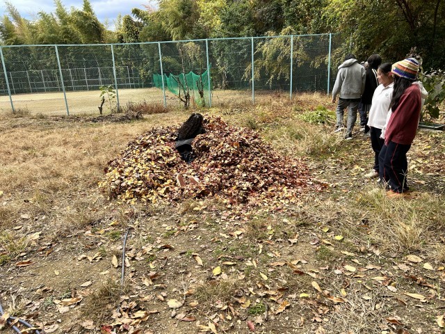 山盛りになった落ち葉で12/16に焼き芋🔥をする予定です。お手伝いいただける保護者の方は、本校までご一報ください😆