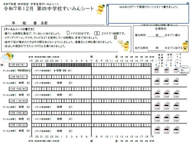 本日より、四中校区そろって、小学生も中学生も早く寝まーす!