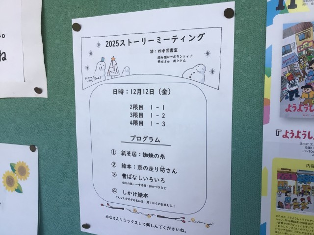 「ストーリーミーティング」プログラム②番の『京の走り坊さん』は、貝塚市清児出身、通称「常さん」の物語。どんなお話か知りたい保護者の方は、今すぐお子様にお尋ねください。2年生も3年生も、1年生の時に聞かせてもらっているお話ですので知ってます。大丈夫。