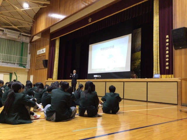 校長先生からのお話には『8月25日に設定した2学期のゴール(目標)は達成できましたか?』『冬休みならぬ冬稽古期間のゴール(目標)は何にしますか?』等のお話がありました。表彰式では男女バスケットボール部が泉南地区新人大会優勝という輝かしい成績を収め、日々の頑張りを全校生徒から称えられていました。