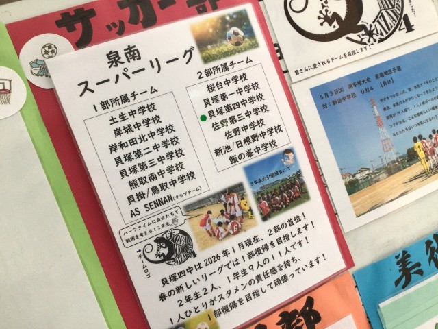 サッカー部は泉南地区のリーグ戦の真っただ中⚽2部リーグの首位を独走中らしいです⭐