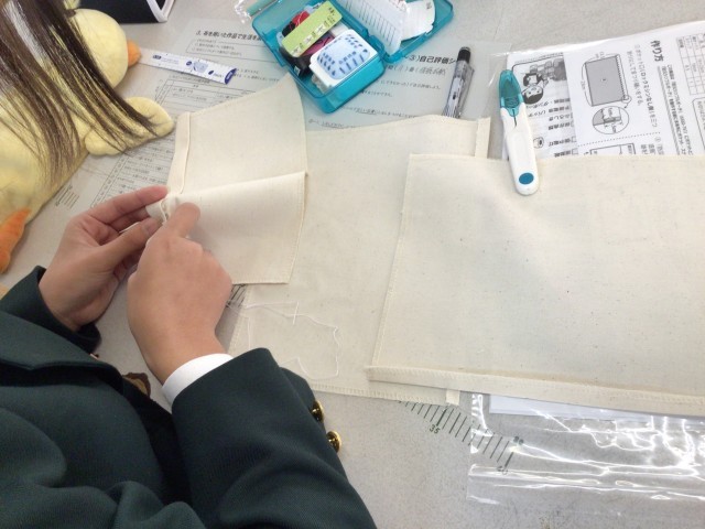 2枚目→1年3組の家庭科におじゃましました。以前に紹介した『防災ポーチ』の作成に取り掛かっていました。今日はポーチづくりを通して『まつり縫い』を習得することが授業のめあてだったようです。アイロンで生地に折り目をつけるのが斜めになっていたり。針に糸を通すのに苦労してたり。玉止め、玉結びするのに手こずっていたり。1本取り、2本取りで混乱していたり。まつり縫いを1ミリ幅で仕上げる強者がいたり🤣みんなスタートは色々ありましたが、無事に防災ポーチが仕上がることを期待しています😆