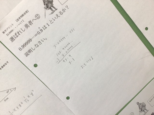 4枚目→3年生の数学教室を覗くと・・・こんな問題が掲示されていました。