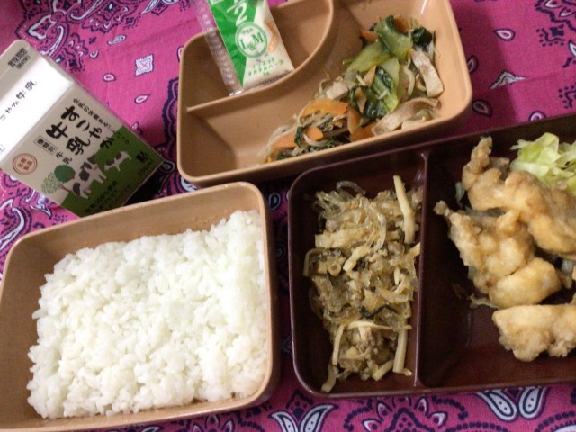 3枚目→今日の給食はチキン南蛮、ゆでキャベツ、春雨のひき肉炒め、ちんげん菜のナムル、タルタルソースでした😋ごちそうさまでした🙏