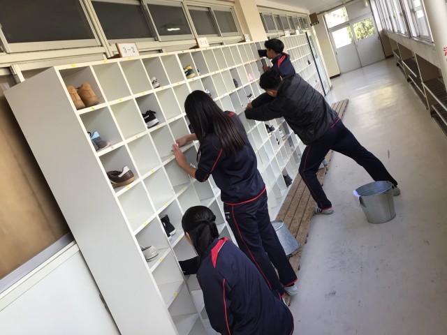 2、3枚目→そんな3年生が卒業後も学校に来て今まで使った靴箱や、教室の清掃に励んでくれています。