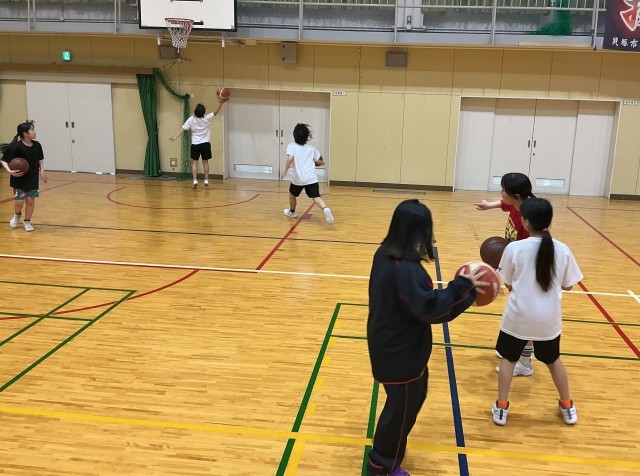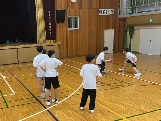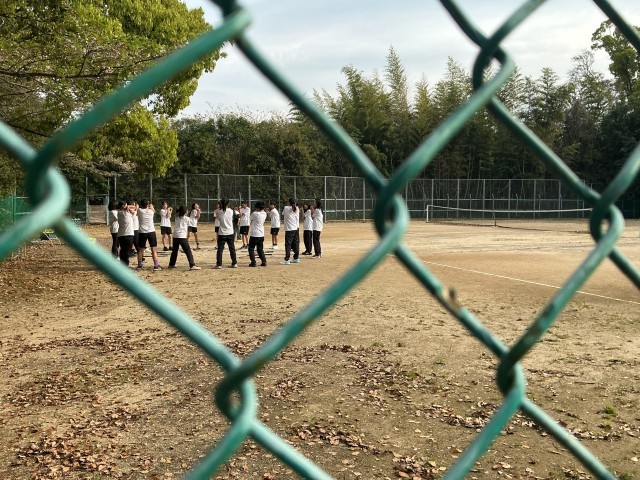 本日の写真は、準備運動の輪に早速一年生をとけこませているテニス部、Tシャツの背中の文字で惹きつけようとする陸上部、きらびやかな楽器の魅力で口説いている吹奏楽部、シュートの楽しさで魅力を伝えようとする男女バスケ部です。