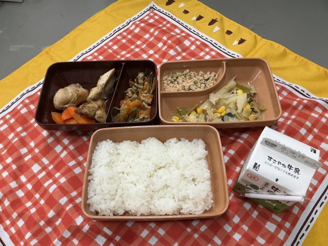 ところで今日の給食メニューは、鶏肉のハーブ焼き(おしゃれ!✨)に、にんじんの甘煮(美味!😋 にんじん嫌いな子でもイケるほど美味!)、茎わかめの炒め煮(健康食!)、ツナのマリネ(保存食!笑)、鮭そぼろにご飯(和食!)、そして牛乳(The給食!)でしたー。 おかげで明日も頑張れます!ごちそうさまでしたー!!
