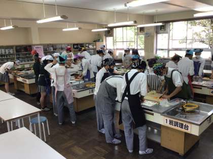 3年2組におじゃましました。焼きそばの調理実習です。お肉や野菜の切り方を見ていると、お家で料理をしている生徒とそうでない生徒がよくわかります。『豚肉が切れない』と言って四苦八苦し、手から伝わる体温でお肉がべちょっとなっているのも、それはそれで良い学びだな、と思って見守りました。