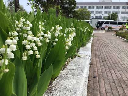 長沼町会館に到着しました。これから各農家さんに分かれます。綺麗な鈴蘭に癒され、しばし時間調整です。
