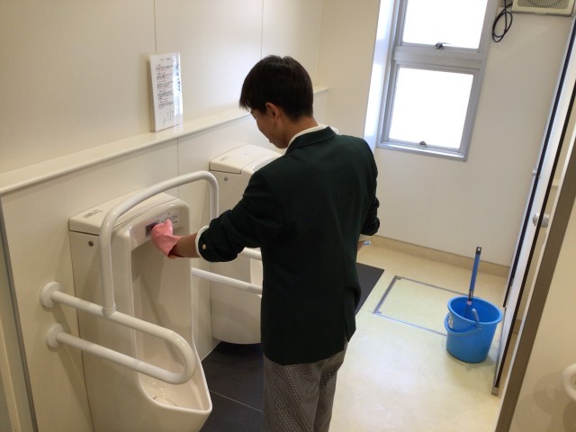 パソコン室前トイレから『先生、次はなにしたらいいですかー?』と意欲的な質問が廊下まで響いてきて、『お!新2年生素敵やん!』と心がほっこりしました。今年度から四中に転勤してこられた先生は『四中生の清掃に対する姿勢を見て、心が洗われました。こんなに一生懸命掃除するんですね』と感想を伝えに来てくれました。