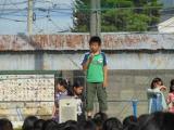 生活委員会の子どもたちは、2学期の生活目標「名札をきちんとつけよう」を全校児童に伝えてくれました。朝礼台には全員が乗ることができません。そこで、発表する子どもたちが一人ずつ順番に朝礼台に上り、発表してくれました。