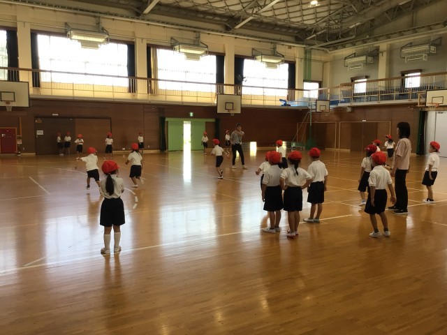 1年生は体育の授業で走ったり跳んだりする練習をしました。音楽も流しながら楽しそうに練習にとりくみました。