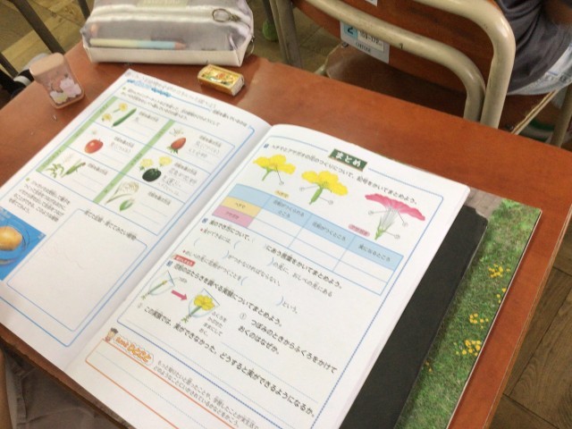 理科の授業ではいろいろな植物の受粉の仕方について調べて交流しました。