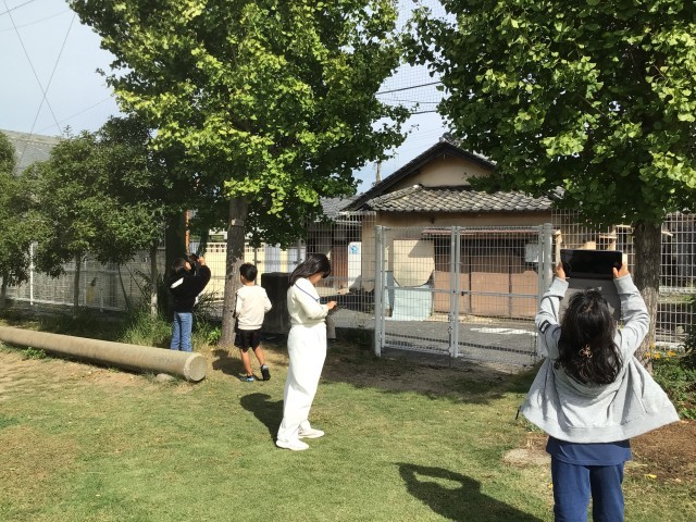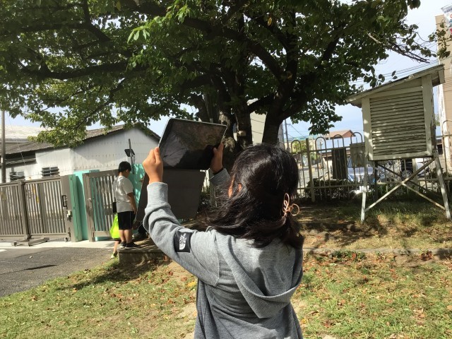 理科の授業で天候が涼しくなると、植物はどのように変わってきたのかを外に出て観察しました。