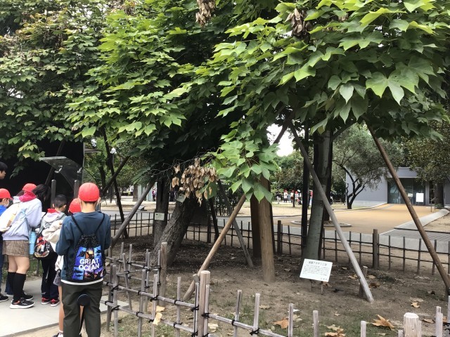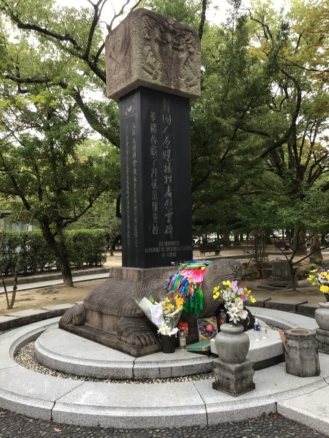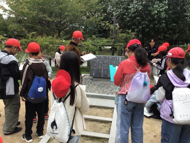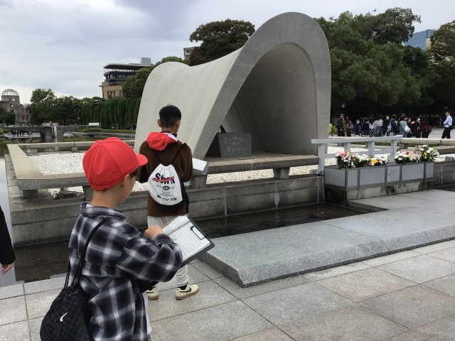 碑に書かれているメッセージや考えたことをしおりに書きこんでいました。