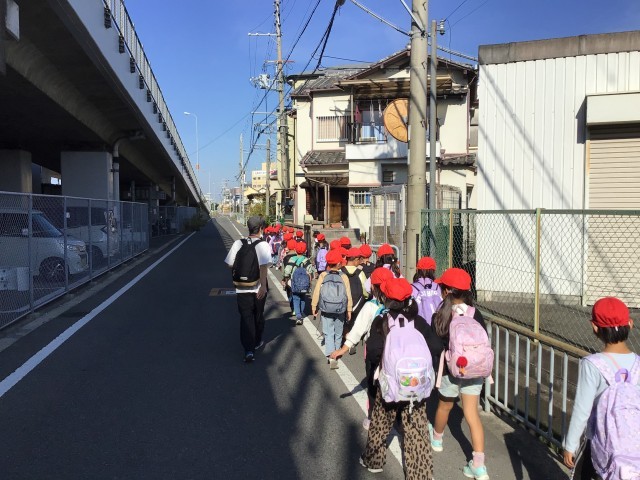 近義の里駅に着きました。行き帰りとも、上手に電車に乗ることができました。今から歩いて学校に向かいます。