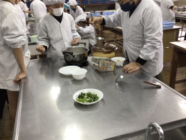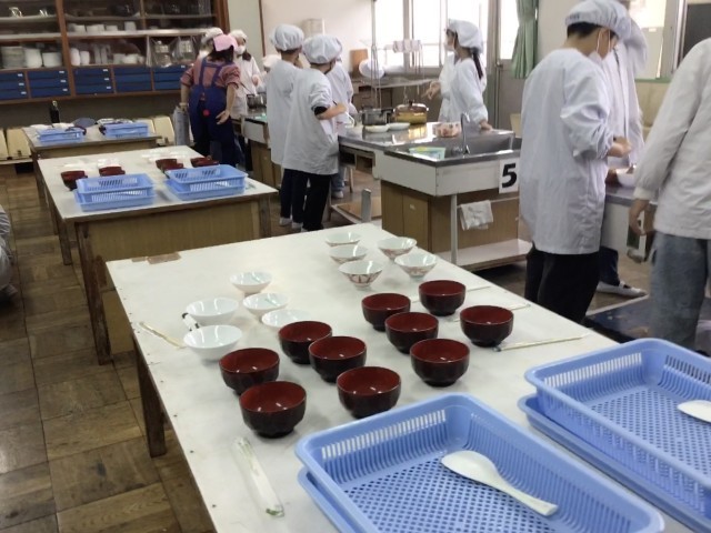 5年生では、家庭科の時間に「ごはんとみそ汁」づくりをしていました。手際よく手順を確かめながら、ご飯を炊いたり、味噌を少しずつ溶かしたりして、最後にはとてもおいしく出来上がっていました。