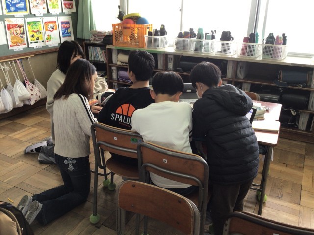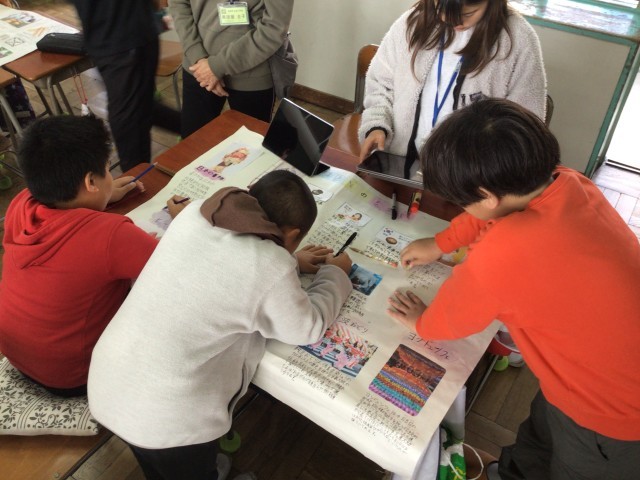 5年生は総合で、校外学習で行ったコリアタウンについて、自分たちで調べたことなどをグループで大きな新聞にまとめていました。