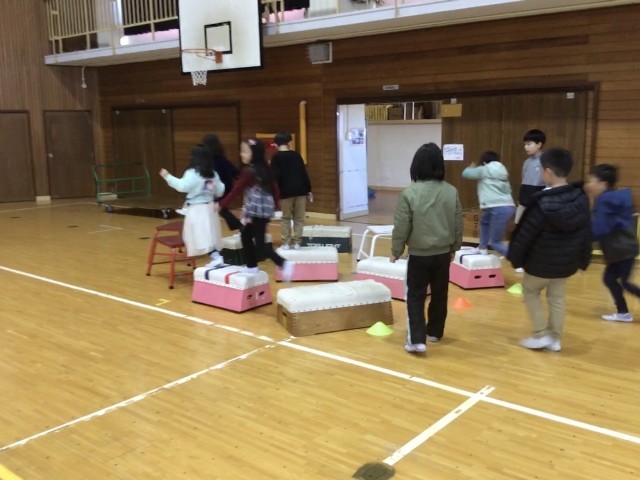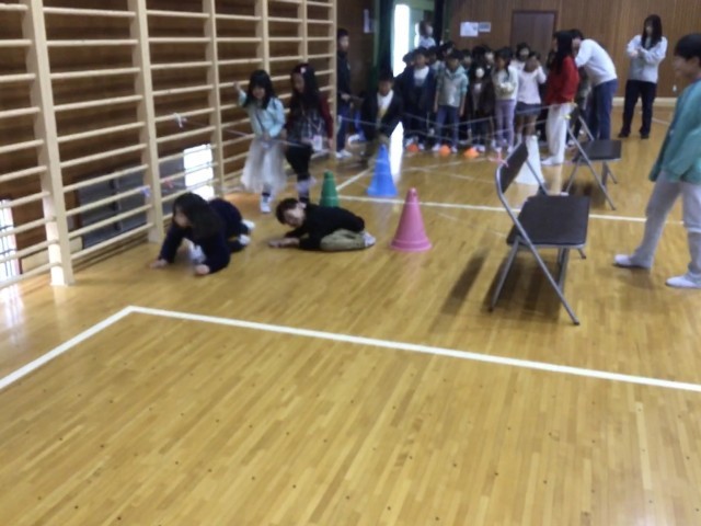 「東小にんじゃアスレチック」今日の大休憩は1年生でした。幼稚園やこども園の時の「にんじゃごっこ」をしているような気分になり、とても楽しそうでした。