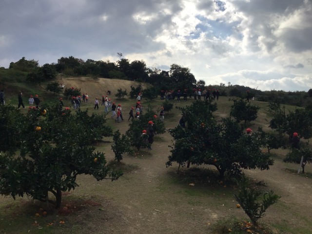 いよいよみかん狩りの時間になりました。あちらこちらから、歓声があがっています。