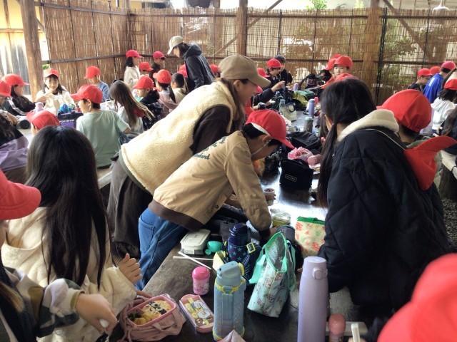 みかん狩りを終えて、お待ちかねのお昼ごはんの時間です。早朝よりお弁当の用意、ありがとうございました。