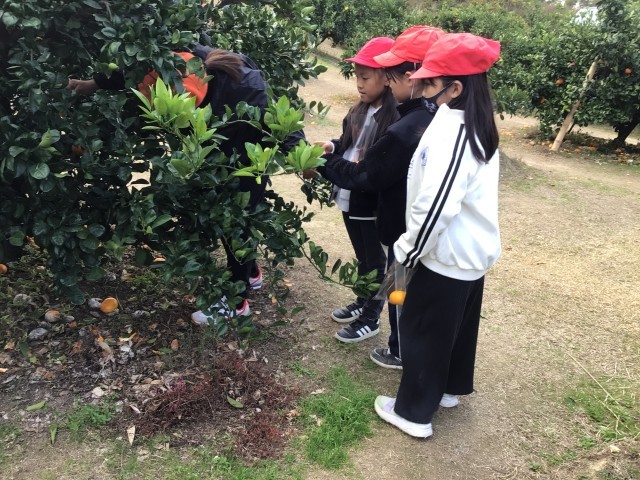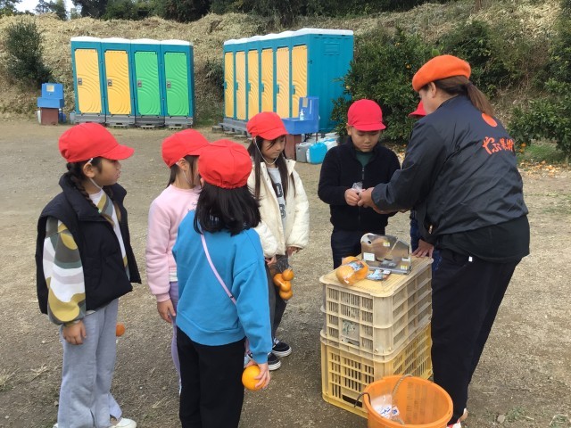 お昼ごはんのあとは、お土産用のみかんを収穫しました。袋詰めをしていただいて、みんな満足そうでした。