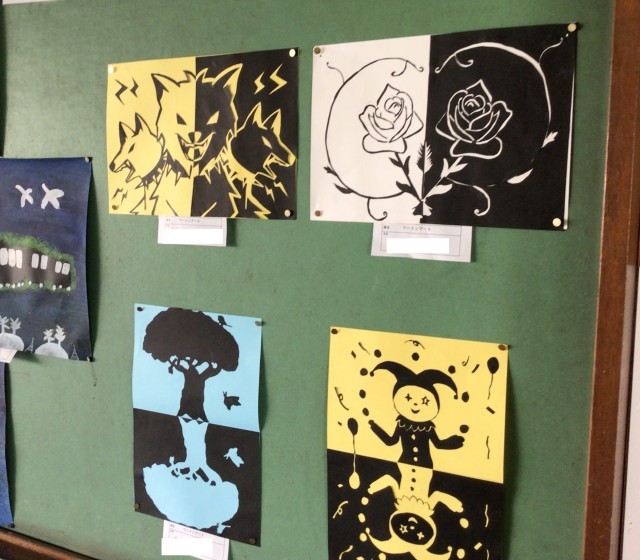6年生は図工の学習で、ツートンアートにとりくみました。2色だけを使って、いろいろなものを巧みに表現しています。今週水曜日から個人懇談が予定されています。来校いただいた際には、玄関や階段などに各学年の作品を掲示しておりますので、ぜひご覧ください。