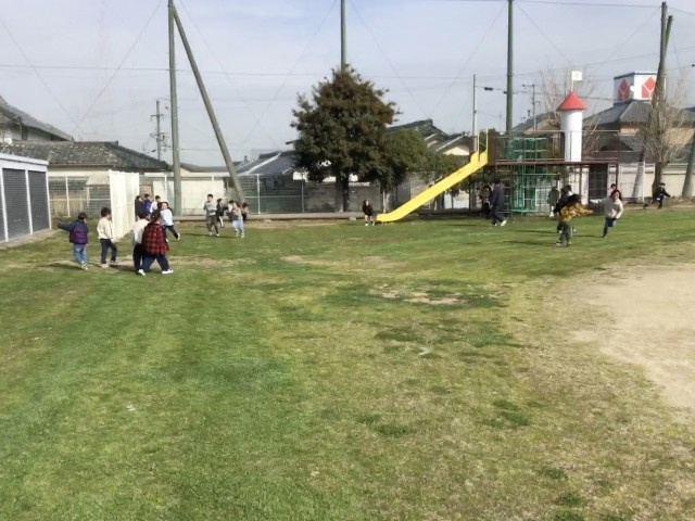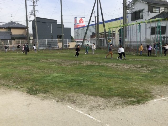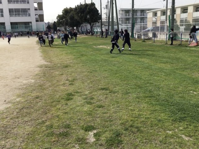 11月に種をまいた「冬芝」の方もしっかり根付き、昨日芝刈りも終わったので、今日から子どもたちに開放しました。早速、子どもたちは元気いっぱい芝生の上を走り回って遊んでいました。校庭緑化委員会のみなさま、ありがとうございました。