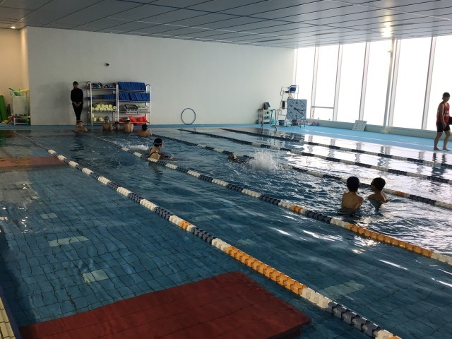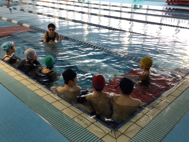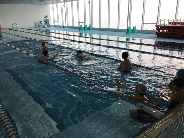 今年度、初めての学校水泳でした。寒い気候でしたが、楽しそうに参加していました。
