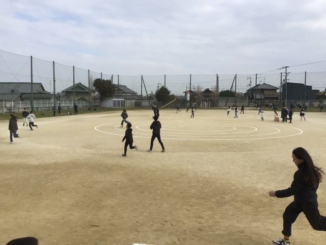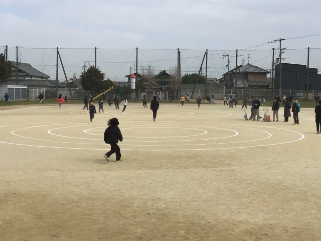 大休に企画・集会委員会が考えてくれた「逃走中」のイベントがありました。委員会の児童と先生がハンターに扮して、追いかけていました。寒さに負けずたくさんの児童が参加していました。