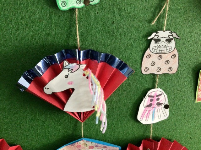 かがやき学級の掲示板には、今年の目標を書いて掲示してくれています。目標のことばとともに、今年の干支の馬の飾りがつけられていて、とてもきれいです。