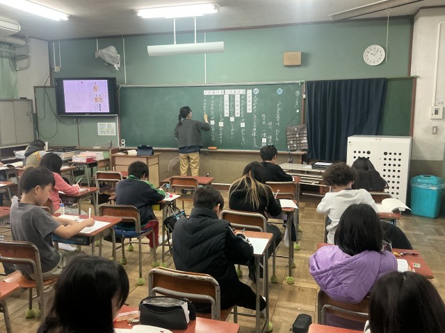 5年生の国語の学習です。「かんがえるのっておもしろい」という谷川俊太郎の詩について学習しました。