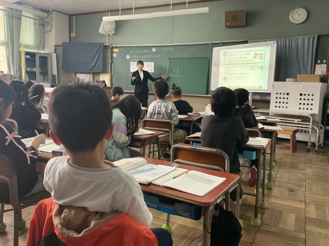 2年生は算数の授業でくりあがりのある筆算の仕方を考えました。