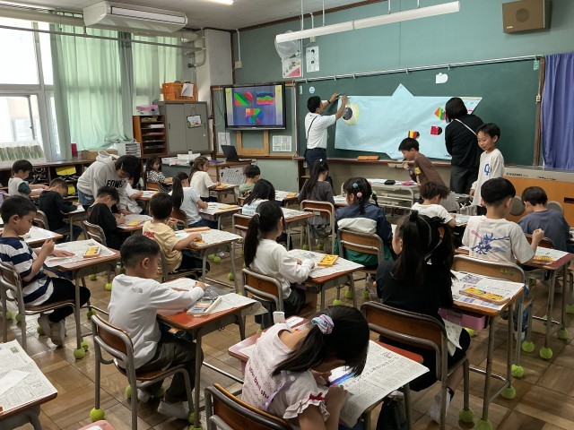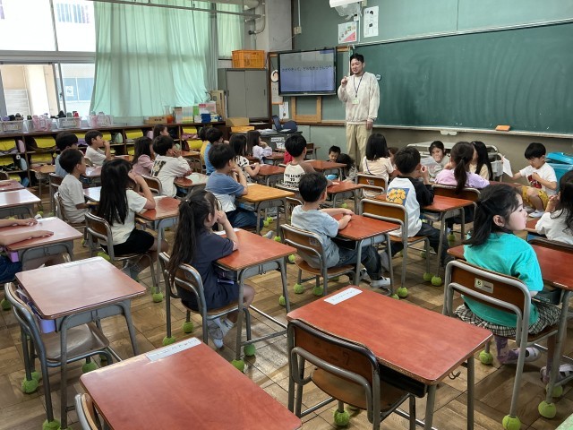 1年生とかがやき学級のみんなで、こいのぼり交流がありました。はじめに、かがやき学級からのお話を聞いて、そのあと、いっしょにこいのぼりのうろこを作りました。かがやき学級の上級生が、1年生のお手伝いをしてくれて、とてもあたたかいこいのぼりが出来上がっていきました。