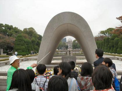 10/31(金)〜11/1(土)の2日間にわたり、広島・宮島方面に6年生は修学旅行に行ってきました。1日目は、平和公園での学習でした。「原爆の子の像」の前で慰霊祭をおこない、学校の代表として全校生で折った千羽鶴を捧げました。また、聞きとり学習、資料館の見学、碑めぐりなどグループ単位での活動もおこない、充実した一日を過ごすことができました。2日目は宮島へ渡り、厳島神社などの観光やおみやげ屋さんめぐりなど、なかまとともに楽しいひとときを過ごしました。天候にも恵まれ、子どもたちはたくさんの思い出をつくることができたようです。