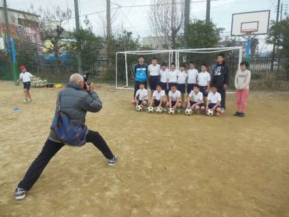 今日のクラブ活動の時間に、卒業アルバムに掲載するクラブ写真を撮りました。業者の方が運動クラブを順番に周り、写真を撮っていただきました。子どもたちはクラブで使っている道具などが写るように工夫しながら写真を撮ってもらっていました。上の写真はサッカークラブの写真撮影の様子です。