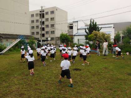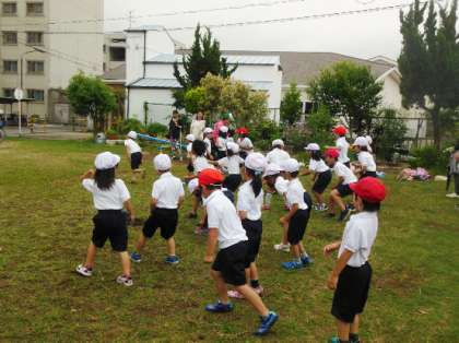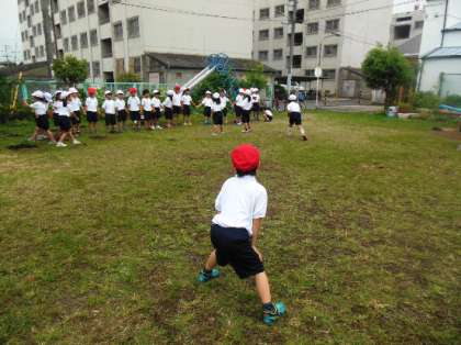 ハート交流館前の公園での2組の様子です。だるまさんがころんだをしました。