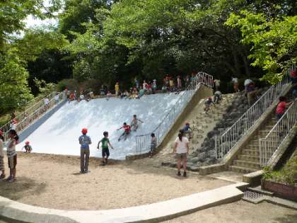 昼食の後は、自由時間です。おやつを食べたり遊具で遊んだり、思い思いに楽しい時間を過ごしました。水間公園の大きな滑り台は迫力満点です。