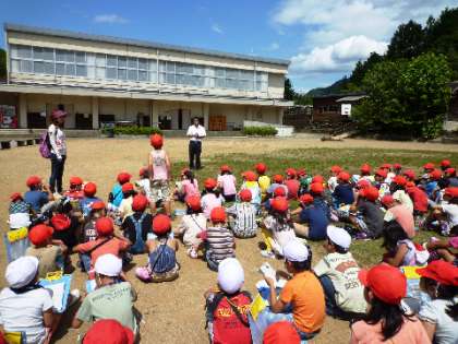 水間公園から再びバスに乗り、農業公園たわわの前を通り、最後の目的地であるほの字の里に行きました。ここでは、職員の方から、ほの字の里がどのような施設なのか、いつできたのか、元々は小学校であったことなどをお聞きしました。利用したことがあるという子も多かったのですが、